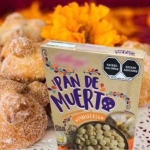 La nueva línea de productos de cereal pan de muerto de Kellogg´s destaca por el nuevo formato de etiquetado de productos, en los cuales se refleja el alto grado de azúcares, sodio y elementos que destacan en los elementos procesados.